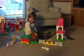 The first major play item I bought for the little girl we babysit was, I believe, a set of Legos for toddlers when she was over a year old.  When I say I bought them for her, I mean I bought them for her to play with when she's here.  She has lots of toys at her house and at both sets of grandparents' homes, but we had very few toys around for a kid to enjoy, and she was going to be spending a lot of time with us.